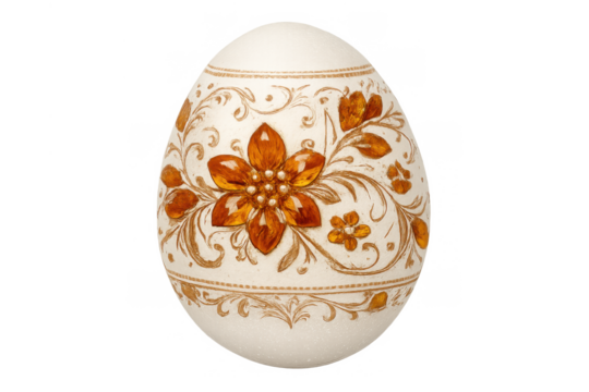 Easter egg decorated with intricate floral design and amber-colored gemstones on transparent background