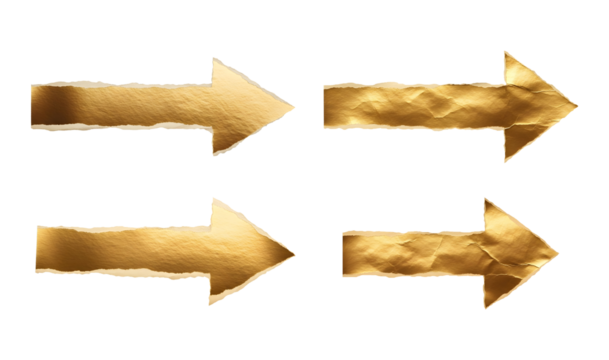 Gold Foil Torn Paper Arrows Set; Isolated Metallic Ripped Paper Directional Pointers on Transparent Background