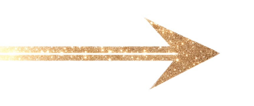 Golden Glitter Arrows Illustration on Isolated Transparent Background