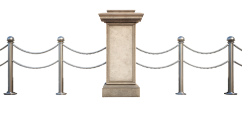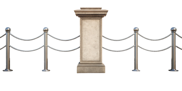 Elegant queue stand with red rope on transparent background