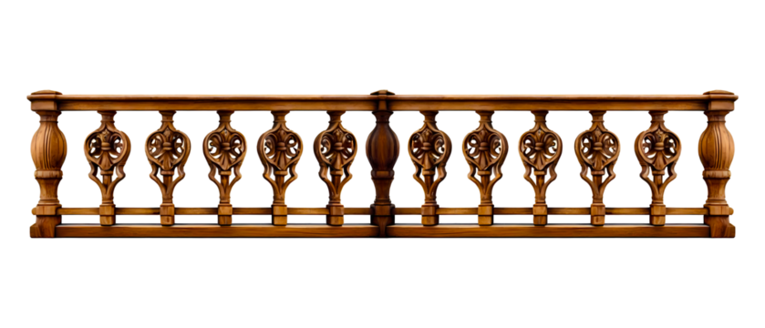 Wooden fence with arching top and decorative cutouts  isolated on transparent background, , clipping paths for design and decoration