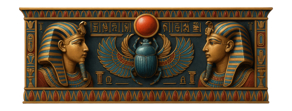 Ornate, bronze-colored metal plate, rectangular with curved ends, bordered by decorative lines and rivets