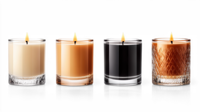 Decorative candles in pastel colors arranged on a light surface showcasing elegant design isolated on transparent background