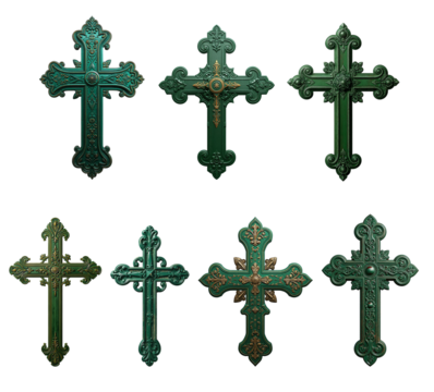 Set of Decorative Golden Cross Pendants, Transparent Background, PNG, Oil Paint