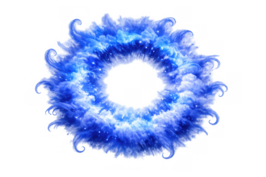 Burning blue marbled pillar candle, flame providing light and warmth, isolated with transparent background