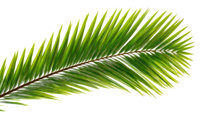 Tropical palm leaf isolated on white background, close-up of green foliage, exotic nature detail for decorative design