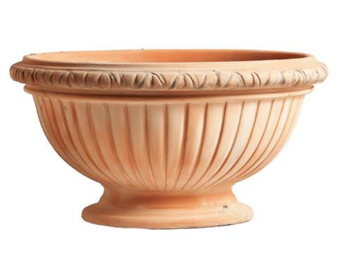 Empty terracotta pot showing grooves and decorative border on transparent background