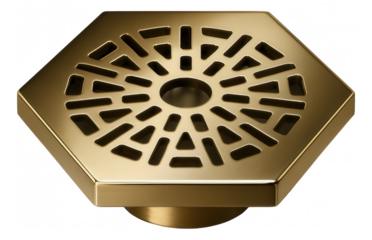 Golden art deco style frame featuring geometric lines and hexagon shapes, creating an ornate corner design, on transparent background