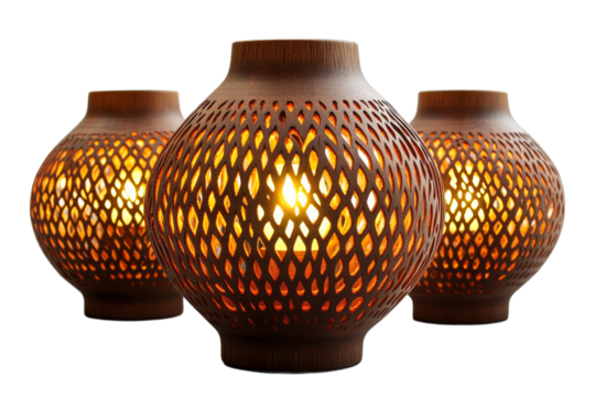 Unique decorative lanterns with warm glow for ambiance