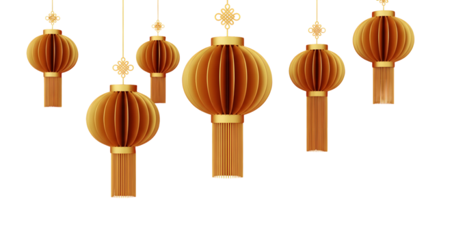 Elegant golden Chinese lanterns swaying gently, bringing festive charm and cultural richness to your designs with a touch of Asian sophistication