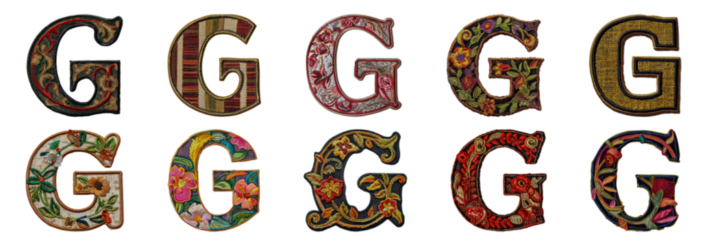 Unique embroidered letter I assortment with intricate details cut out png on transparent background