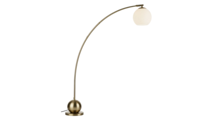 Isolated modern brass floor lamp with sphere base and globe shade with natural lighting