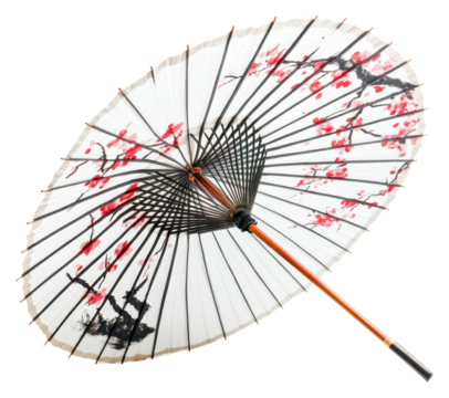 Traditional cherry blossom umbrella japan decorative studio isolated on transparent background