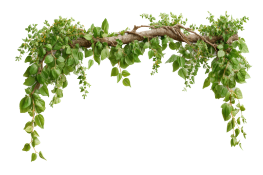 Lush green vines with abundant leaves cascade gracefully creating a natural decorative border foliage transparent background