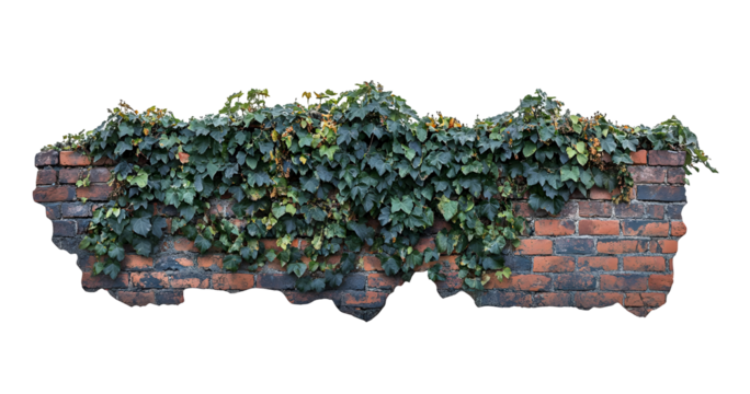 Ivy-Adorned Ancient Brick Wall Fragment, Isolated on Black, Architectural Element