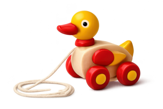 Wooden Duck Toy on Wheels with a transparent background image here.