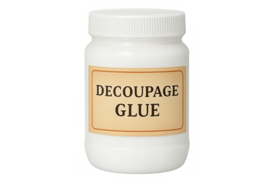 White plastic bottle containing decoupage glue, isolated on a transparent background, ready for crafting and diy projects
