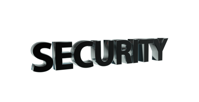 Security Sicherheit schwarze plakative 3D-Schrift, Vertrauen, Schutz, Vorsorge, Gefahrenabwehr, Risikomanagement, Prävention, Sicherheitsmaßnahmen, Datenschutz,  Cybersecurity, Rendering, Freisteller