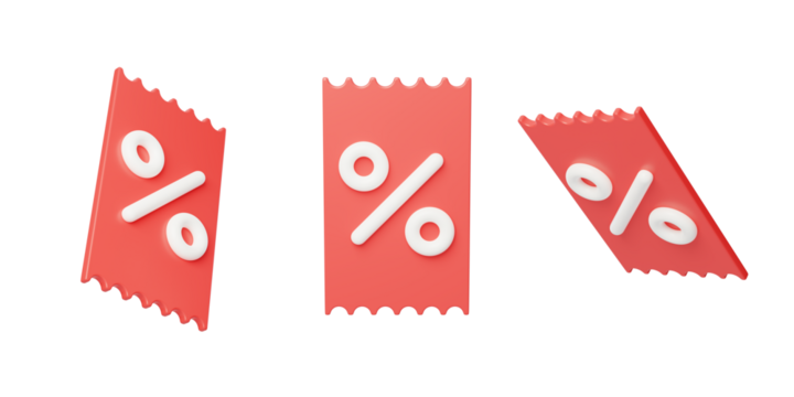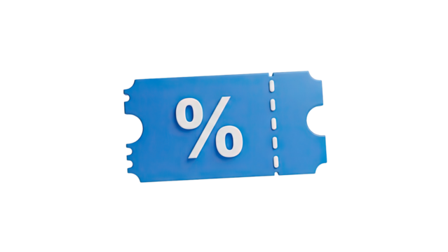 Blue Discount Coupon Ticket with Percentage Sign on transparent background