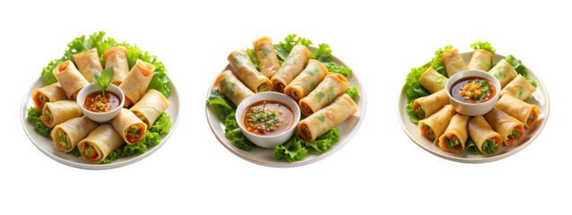 High-Resolution Plate of Spring Rolls with Dipping Sauce on Transparent Background for Food Design