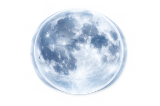 Full moon against a transparent background showing glowing lunar surface texture and craters for astronomy concepts