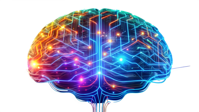 Artificial intelligence brain isolated on transparent background, showcasing neural network and innovative technology