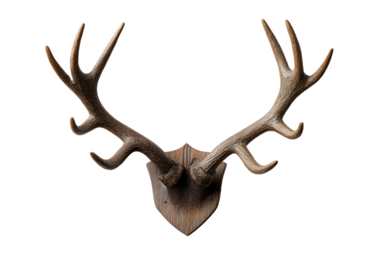 Decorative deer antlers mounted on a wooden plaque a rustic wall decor piece