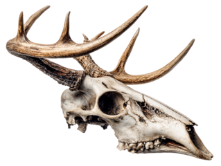 Hand holding deer skull isolated on white background for rustic art and unique display concepts