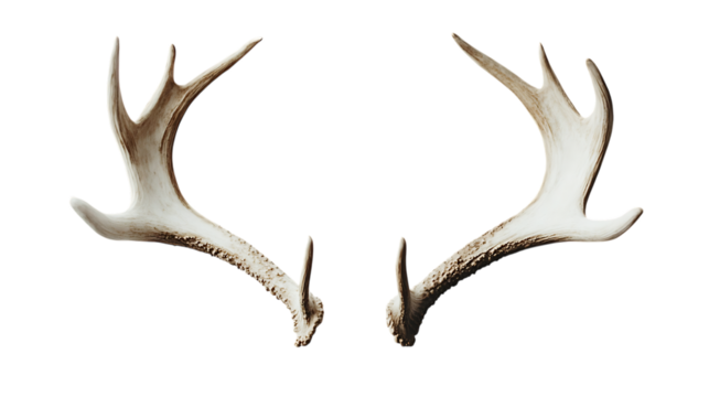 Pair of deer antlers with detailed texture, rustic decor,