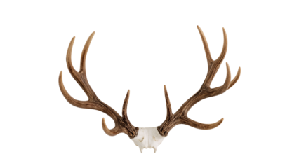 Realistic reindeer antler pair, isolated, transparent background, clean cut edges