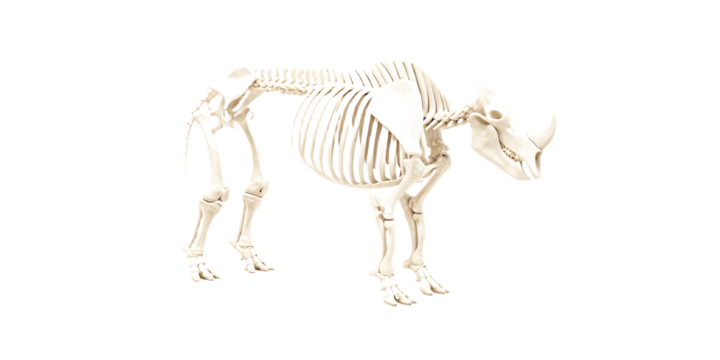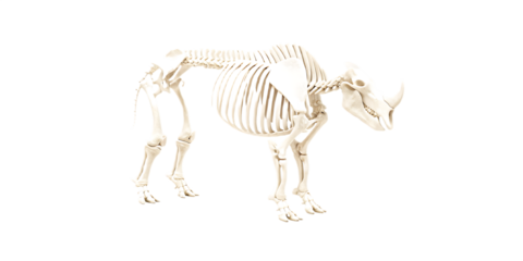 Woolly rhinoceros skeleton isolated on a transparent background