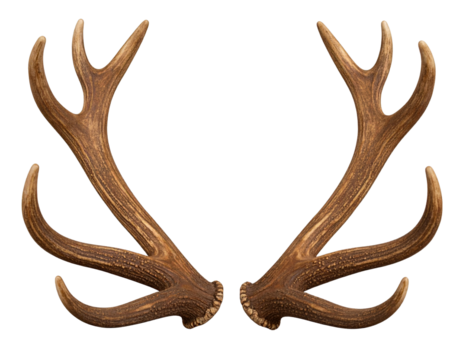 Realistic reindeer antlers with natural texture and curved tines isolated on transparent background PNG