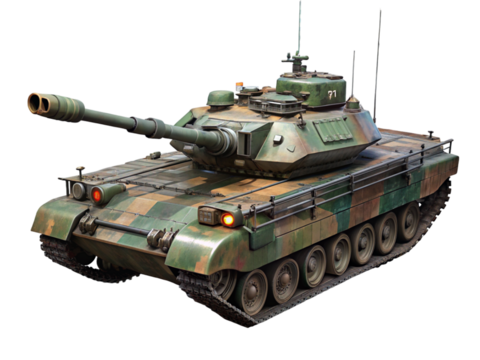 Camouflaged Leopard 2A7 main battle tank isolated PNG, modern military vehicle for defense and combat operations on transparent background
