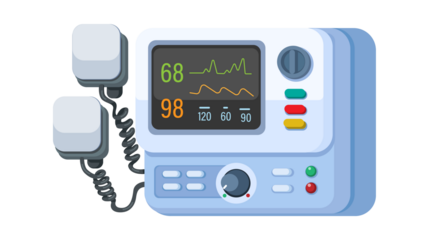 Advanced heart defibrillator with real-time ECG data, isolated on a Transparent background, PNG file.