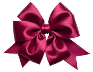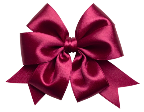 Close-up of a glossy, deep red satin bow, with clean, defined edges, on a black background