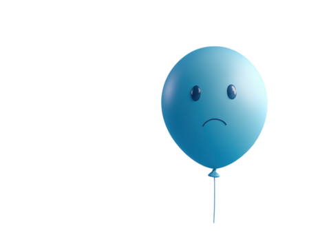 Blue balloon with a sad face on a blue background PNG transparent.