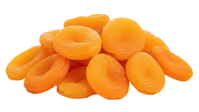 Isolated pile of dehydrated apricots, a healthy dried fruit snack with chewy texture