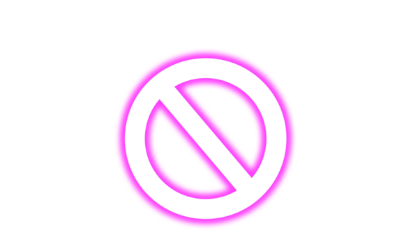 Bright magenta and white prohibition symbol graphic on a solid for warnings on transparent background