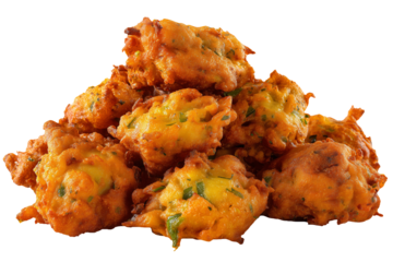 Crispy onion pakoras, a traditional Indian snack, perfect for appetizers and street food vendors on transparent background