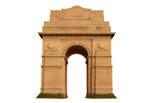 India Gate monument in New Delhi made of sandstone with an arched entryway isolated on a transparent background