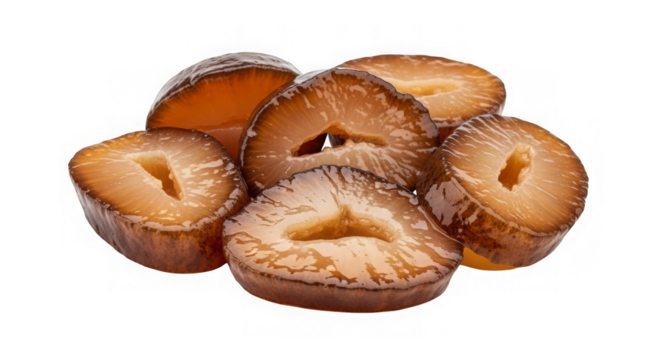 Traditional indian laddoo in brown bowl with halved cashews on transparent background