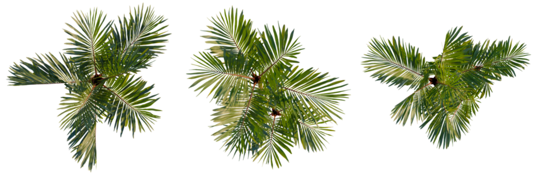 Cyrtostachys renda tree plan, top view, cutout, transparent background, isolate, Detailed close-up of a lush green fern frond with delicate details, perfect for nature themes.