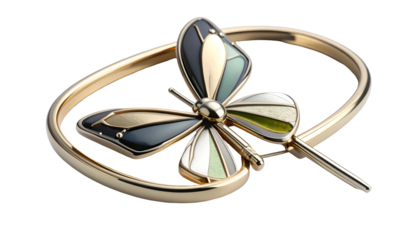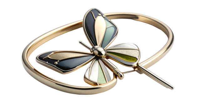 Ornate gold-toned accessory featuring a butterfly with segmented, multi-colored wings