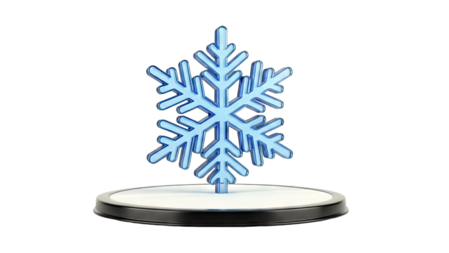 Unique natural snowflake creating a delicate symmetrical winter ice crystal structure on transparent background