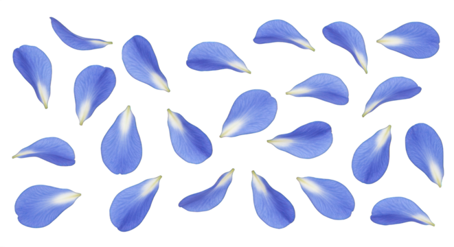Delicate Blue Flower Petals Scattered and Isolated on a Transparent Background
