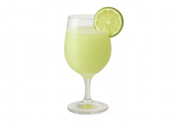 Refreshing limeade drink in glass with transparent background