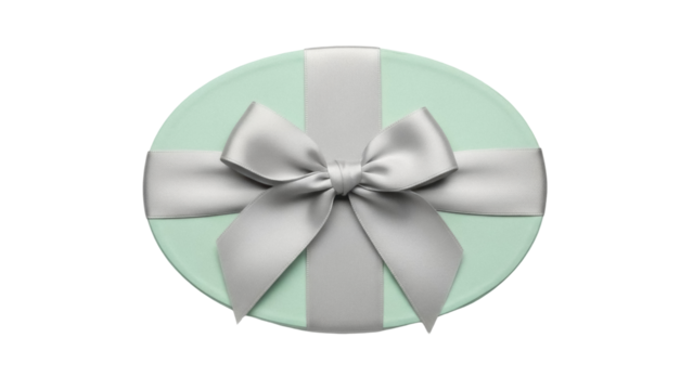 Isolated turquoise gift box tied with silver ribbon and a bow, perfect for surprises