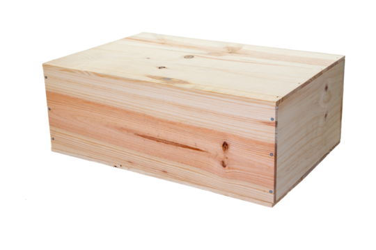 Wooden plywood box Mockup wine pack in isolated cutout PNG white background