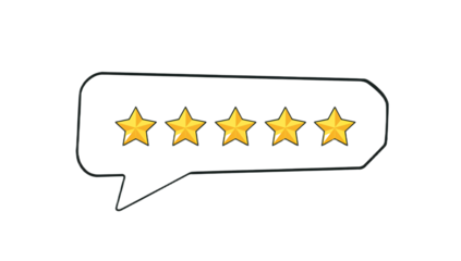 Five golden stars shining bright within a speech bubble, symbolizing excellent customer feedback and a top-notch rating for outstanding service and quality product experience.