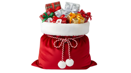 Santa's red christmas sleigh creating holiday magic and delivering festive seasonal gifts, transparent background